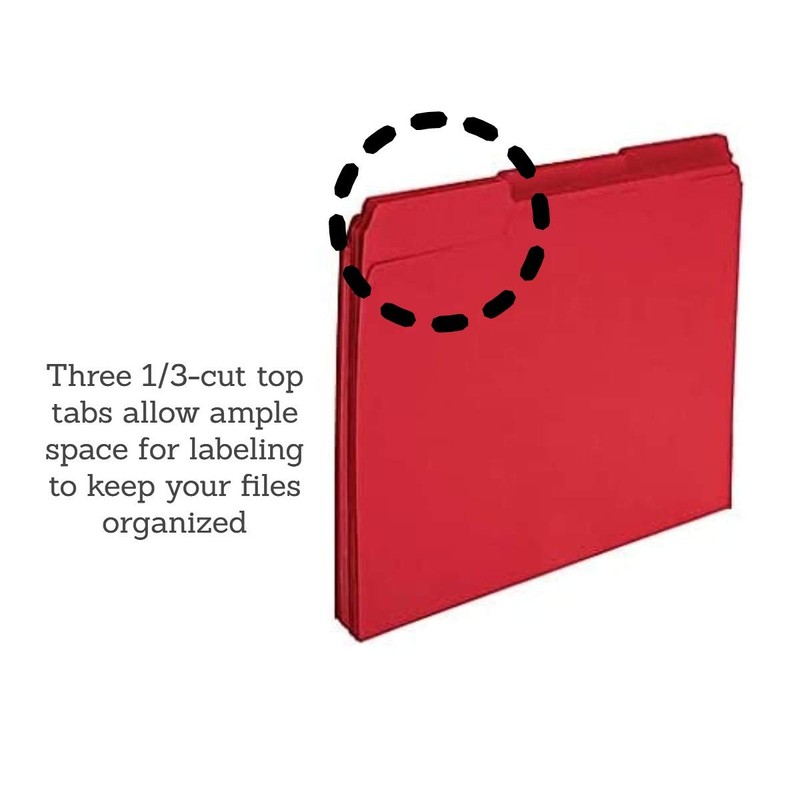 - Three 1/3-cut top tabs allow ample space for labeling to keep your files organized
