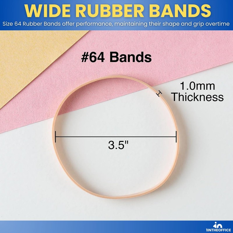 1InTheOffice Rubber Bands Size 64, Quality Multi-Purpose Rubber Bands, 1 lb (380 Bands Per Bag)