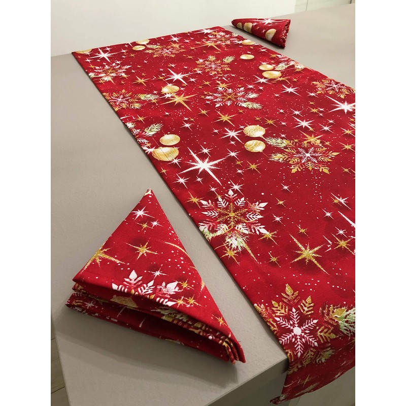 • This Christmas tablecloth will help you create an elegant atmosphere on your table. Can be combined with placemats, table runners, tablecloths and bread bin with the same fabric and pattern.