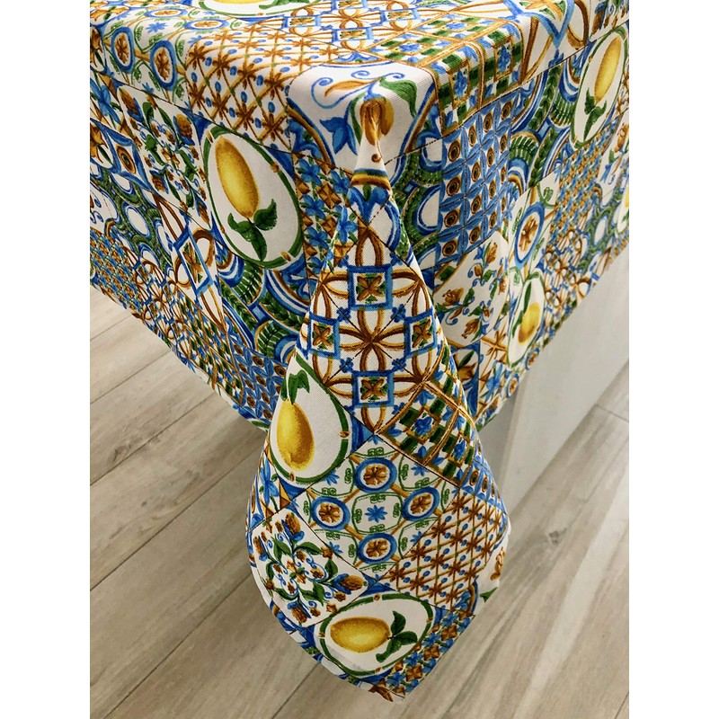 1KDreams Sicilian Lemon and Majolica Rectangular Tablecloth Modern Made in Italy 130 x 180 cm