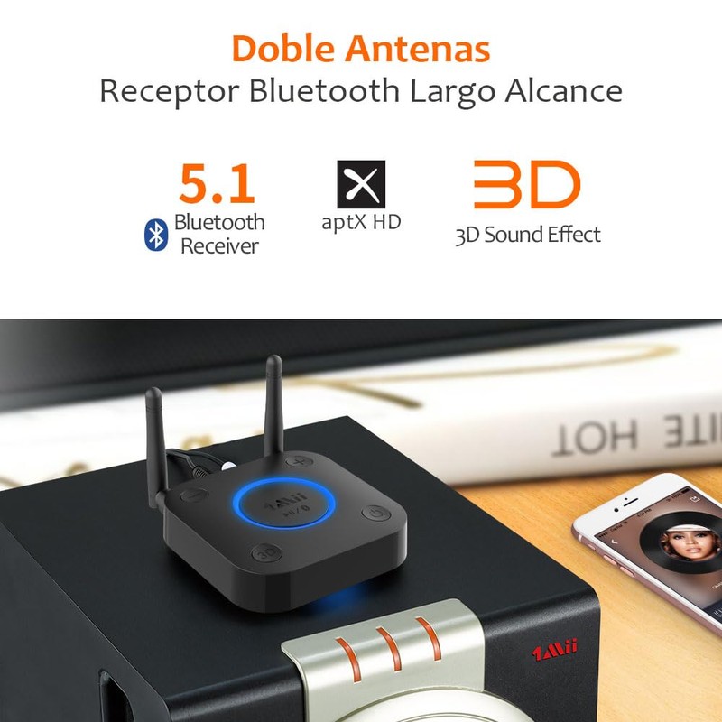 - 【APTX BAJA LATENCIA &3D AUDIO】1Mii B06 Pro receptor Bluetooth HiFi para estereo hogar, amplificador con Bluetooth 5.1 de Chip que garantizar una transmisión de audio de alta fidelidad a altavoces o home cinema que no tienen Bluetooth. Soporta apt-X y aptX de Baja Latencia (aptX-LL). Y presionando el botón "3D"( LED se convierte en verde), el receptor de audio Bluetooth le ofrece un sonido más profundo y real.