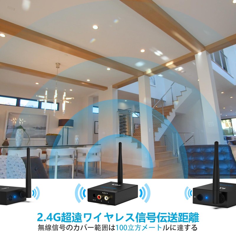 Long Range 328.4 ft (100 m) x 2: The 1Mii RT5066 bluetooth transmitter receiver with 2.4 GHz technology and the antenna delivers a very strong wireless signal. The signal cover can reach 32.8 - 164.4 ft (100 m) outdoors. Two receivers receive signal at the same time and connect two speakers at the same time, so you can enjoy music within the signal range without audio loss or carton.