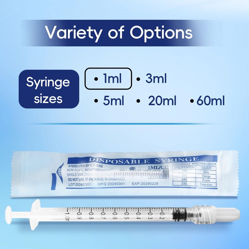 - Luer Lock 1ml Syringes Wide Applicability: Ideal for laboratory operations, industrial use, and household tasks such as pet feeding and crafting