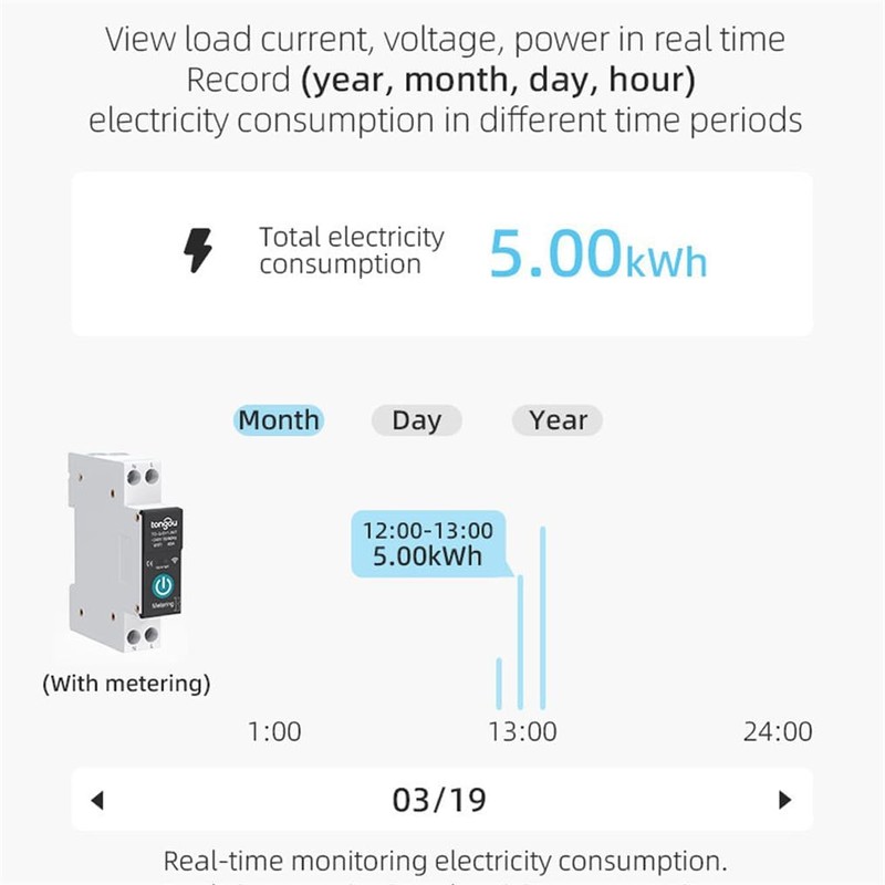 - Electricity Cost This smart switch provides a current capacity of 63A and can manage high power devices to ensure reliable performance and safety for your electrical system.