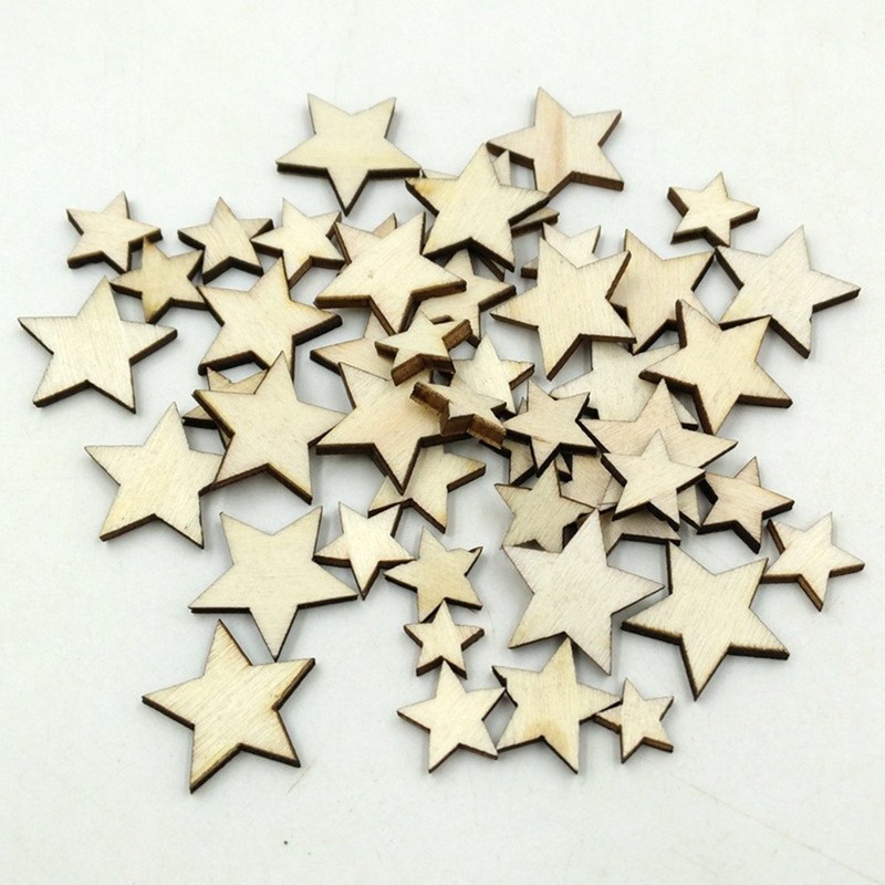 1Pack(100pcs) 5 Sizes Mixed Natural Wood Five-pointed Star Wedding Sewing Scarpbooking DIY Buttons Table Scatter Decoration