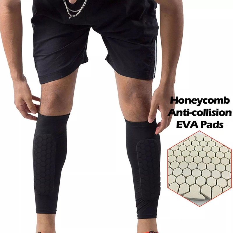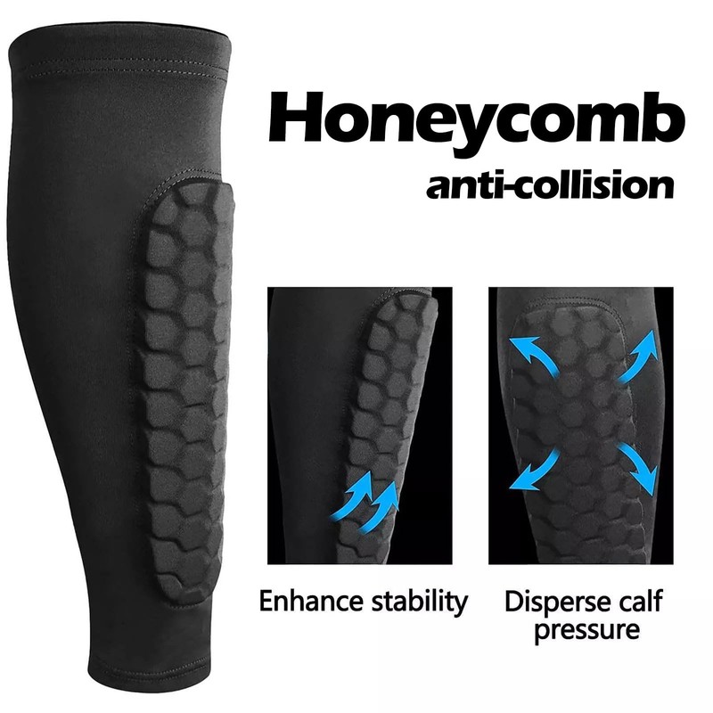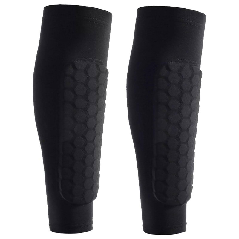 Introducing the Shins Brace Sleeve, a pair of black multi-functional honeycomb protective sleeves designed specifically for active individuals. Whether you're running, participating in ball sports, engaging in fitness routines, cycling, or exploring the great outdoors through mountain climbing and hiking, these sleeves provide essential protection for your shins.