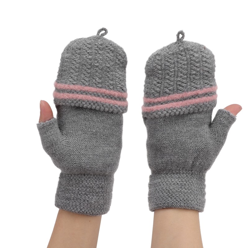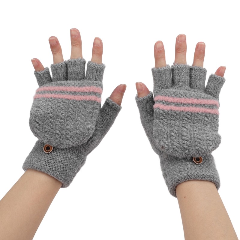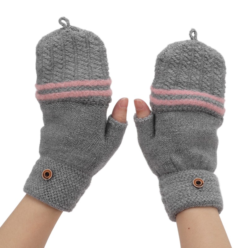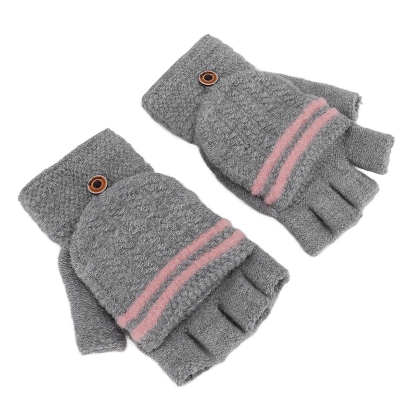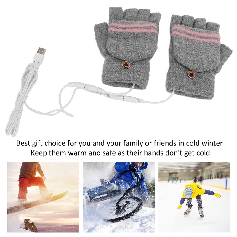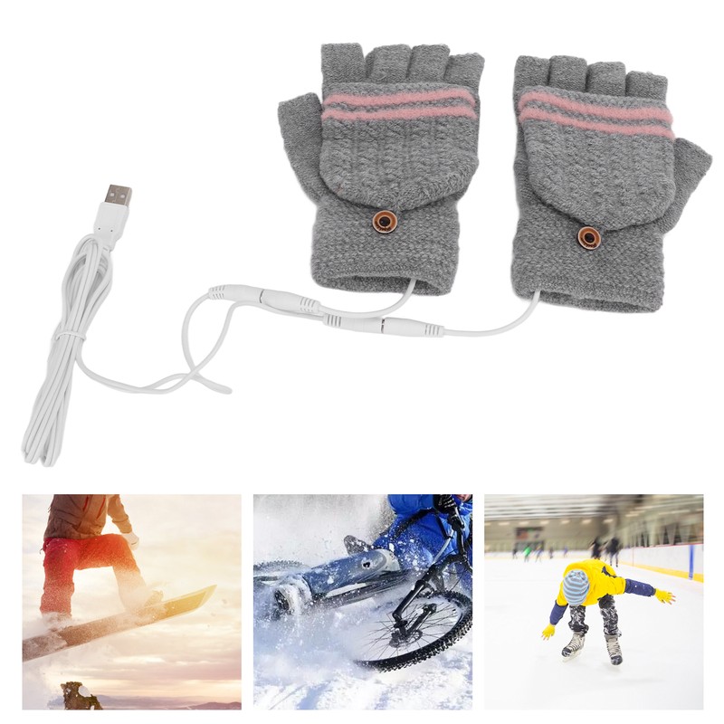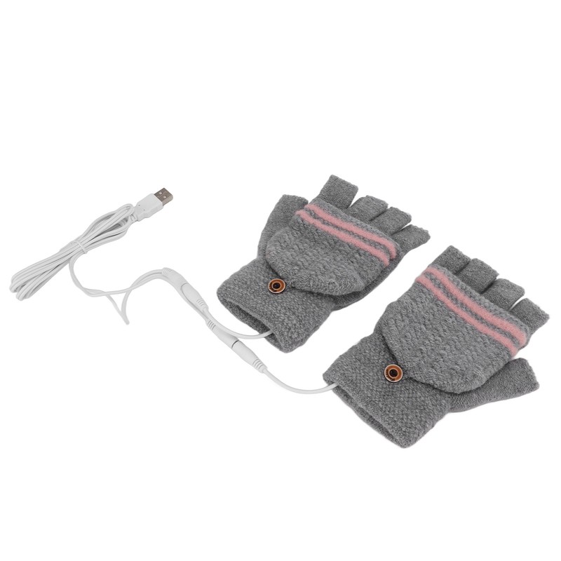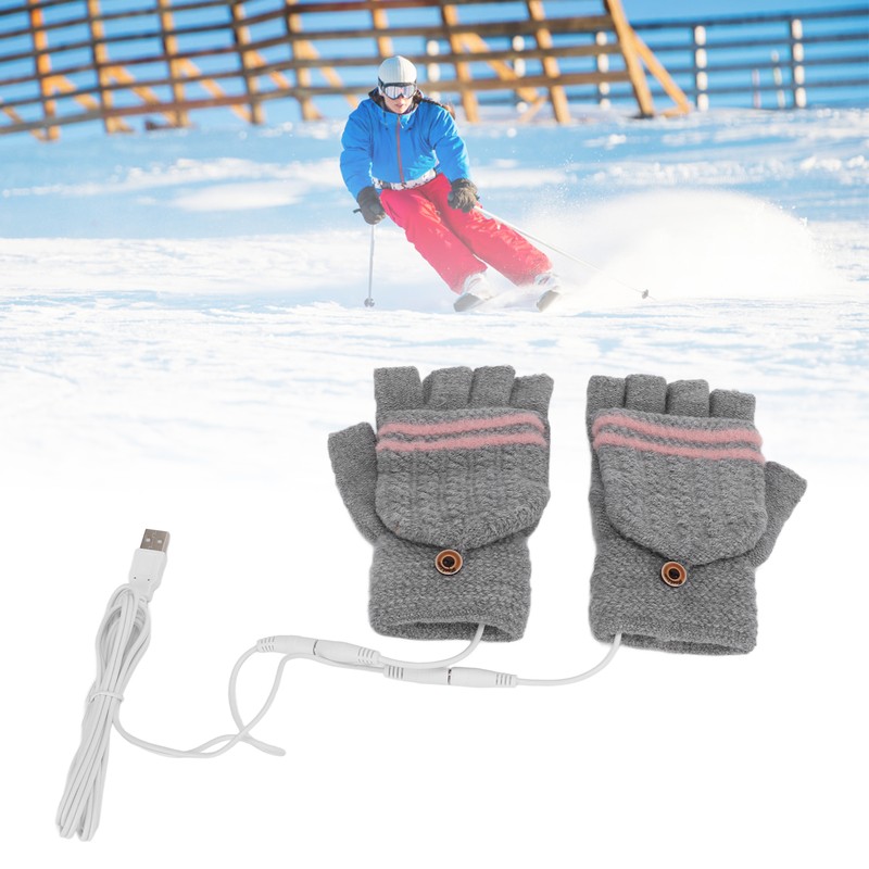1Pair USB Heated Winter Gloves Mitten Knitting Hand Warmer Gloves Fingerless for Typing Laptop PhoneGray