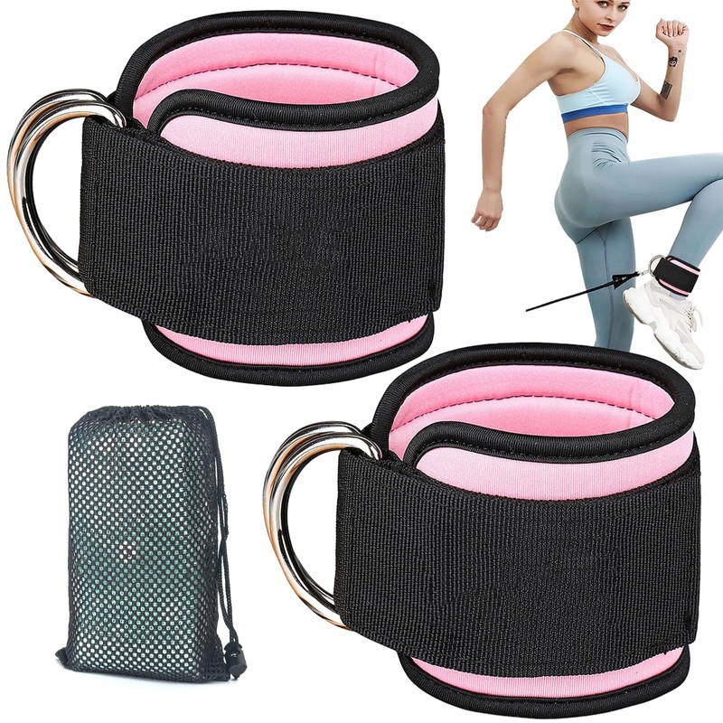 1Par Correas de Tobillo para Máquinas de Cable,Grilletes para Tobillo Gym,Doble D-Ring,Hebilla de Tobillo Fitness para Retroceso,Entrenamiento de Glúteos,Extensión de Piernas,Elástico Ajustable(Rosa)