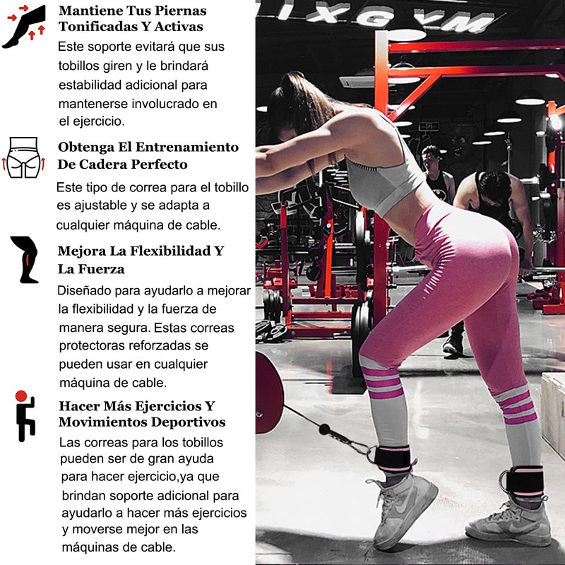 - ENTRENAMIENTO MULTIPROPÓSITO: esta correa para el tobillo se usa como una banda de resistencia y brinda un excelente soporte para el tobillo para los entrenamientos de piernas y glúteos. Úselo para retrocesos de polea de cable, columpios de cadera, levantamientos de piernas laterales, patadas de burro, flexiones de piernas, empujes de cadera, estiramientos de piernas cruzadas, abducciones de cadera, glúteos, isquiotibiales y ejercicios de cuádriceps.