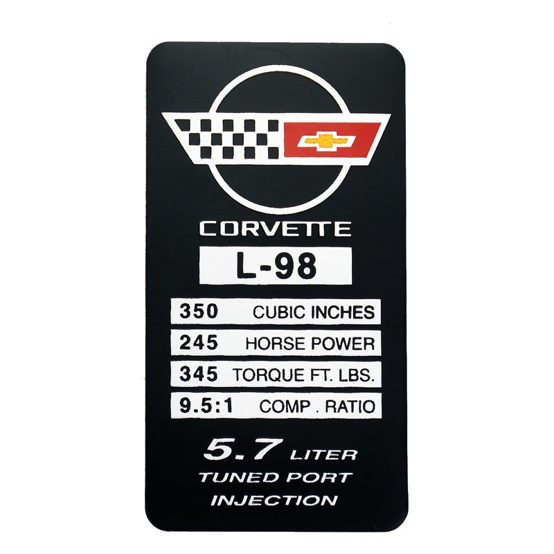 1Pc C4 Corvette 1990 L98 Engine ID Spec Metal Data Plate Emblem 3D Badge Name...