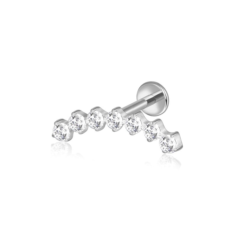 - 16G Cartilage Piercing Jewellery with 7 Clear Cubic Zirconia: Post thickness 16Gauge=1.2mm(0.047"), Post length 8mm(0.31"). Curved row of CZ is about 15.5*4.4mm.