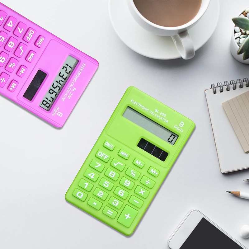 1Pc Green Basic Standard Calculators Mini Digital Desktop Calculator with 8-Digit LCD Display, Battery Solar Power Smart Calculator Pocket Size for Home School for Basic Office Calculators Products