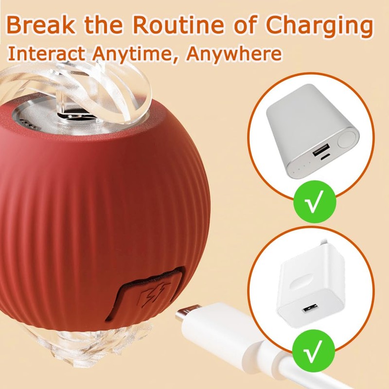USB Rechargeable: This interactive cat toy has a built-in rechargeable battery, and the charging port is located inside the switch button cover. Open the cover and easily charge it using the included USB cable