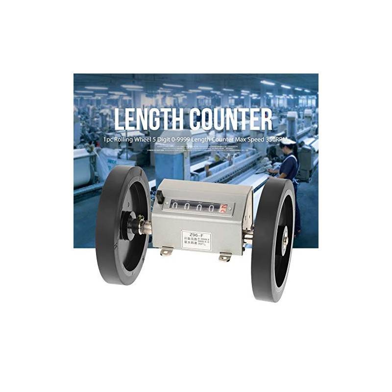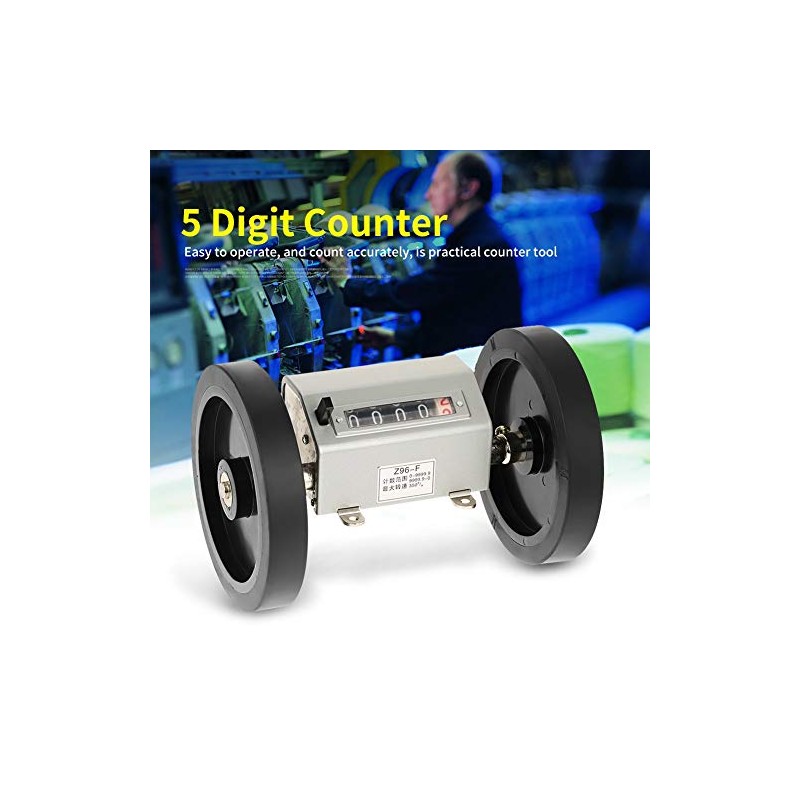 A counter used for measuring length and various mechanical drives, usually for record of of weaving, plastic film, leather, etc. 5 digits counter is easy to read. Count range is 0-9999.9 Easy to operate, and count accurately, is a practical counting tool. The wheels on the counter has stripes, anti-skip. The reset key is more fit for daily , more convenient to use.