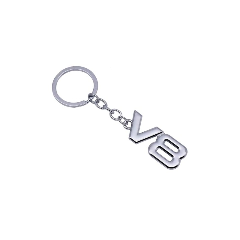1Pc V8 Logo Emblem Keychain Car Key Chain Metal Car Keyring Accessories, Chrome, Small