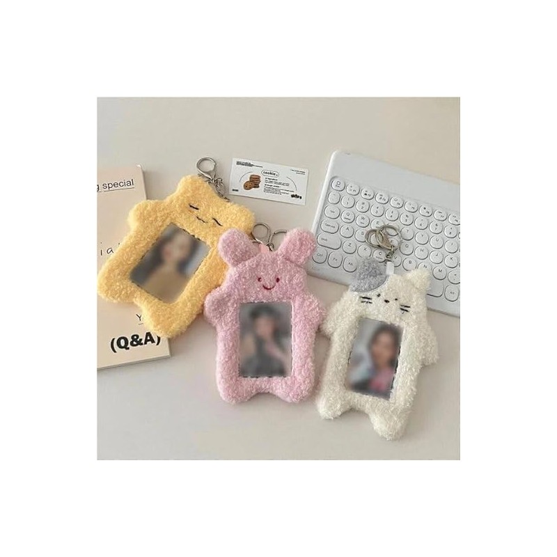 1Pc White Cute Cartoon Plush Photocard Holder with Keychain Pendant Kawaii Cat Card Sleeve Student Card and ID Cases Medium Size, Lightweight and Portable Women Card Cases