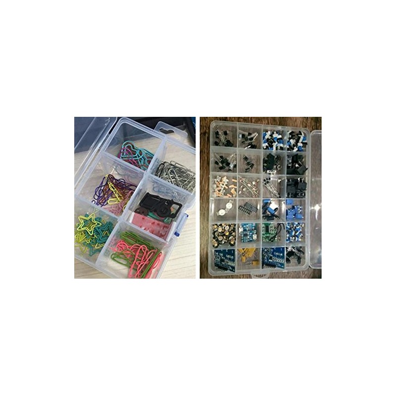 The storage box is perfect store Loom bands, earrings, necklace, beads, finger rings or other small jewelry.It can also store fishing hook, fish lure bait crafts, nails, nuts and bolts or other small tool kit.The organizer keeps your house or office clean and tidy.