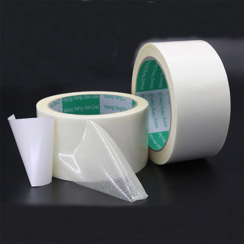 Durable double sided carpet tape that is easy to install and peel off by hand.