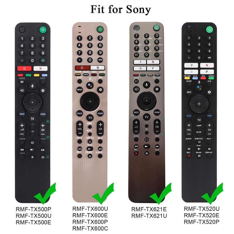• Compatible with SONY smart TV Voice Remote RMF-TX600U, RMF-TX600C, RMF-TX500E, RMF-TX611E, RMF-TX611U, RMF-TX520P, RMF-TX600E, RMF-TX600P, RMFTX600U, RMFTX500E, RMFTX600E, RMF-TX520U, RMF-TX500P, RMF-TX500T, RMF-TX621E, RMF-TX621U, RMF-TX520E.
