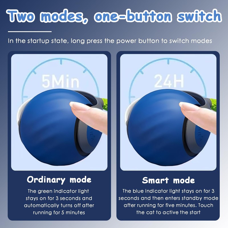 - 【Smart Sensing Technology】Featuring a one-paw activation switch, this Type-C rechargeable smart toy ball easily switches between normal and smart modes, providing an exciting experience for your pet