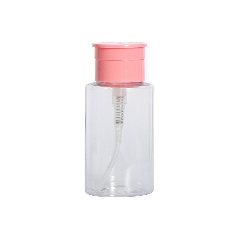 1Pcs Leak-Proof & Portable Push Down Pump Dispenser Bottles: Refillable Clear Containers for Nail Polish, Makeup Remover, Travel, Salon, Hospital Use (1, Clear Pink)