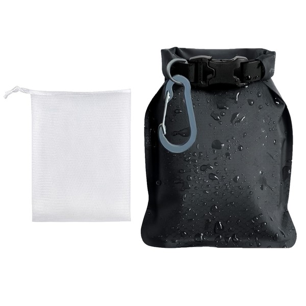 1Pcs Soap Box, Waterproof and Leakproof Travel Soap Case, Black Soap Bag, Portable Sealed Soap Holder Travel, Suitable for Travel, Camping and Outdoor (with Foaming Net and Carabiner)