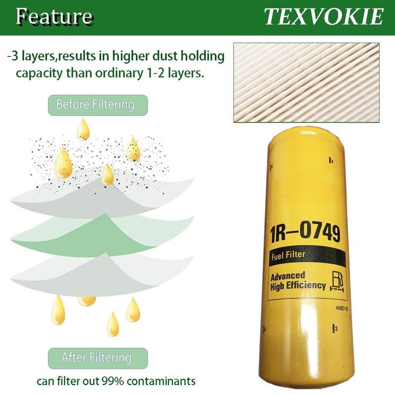 - 【NOTE】This product is not an original part; And please replace your filter regularly;Packege included 6 x 1R-0749 Fuel filter.