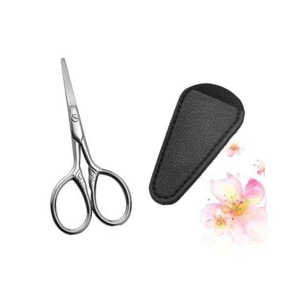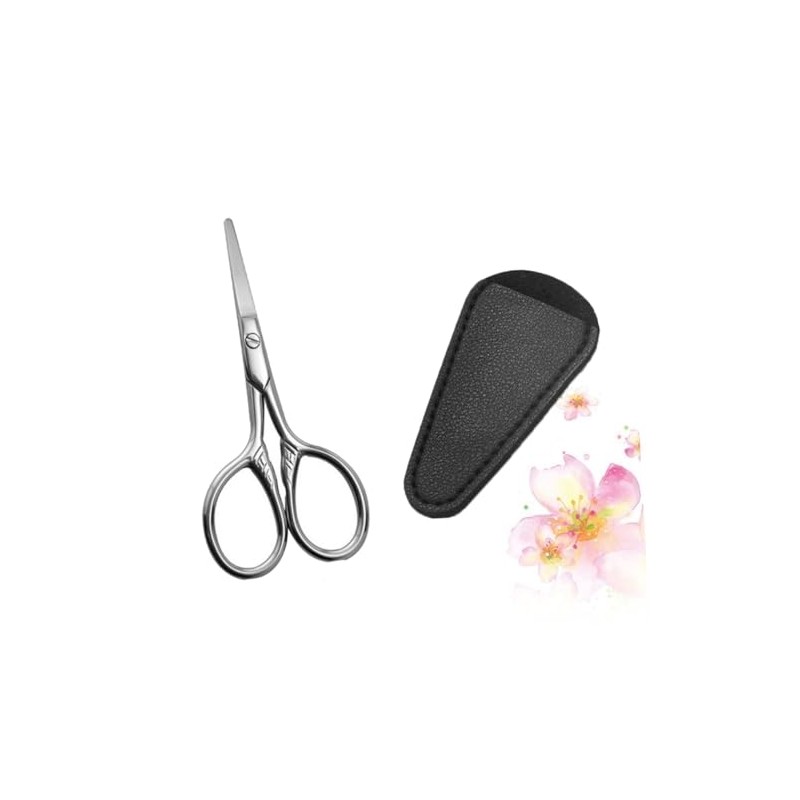 1set Portable Beard Scissors and Beauty Shears Small Makeup Tool Pu Cover Round Head Trimming Scissors for Home Salon and Barber Use