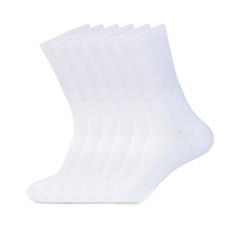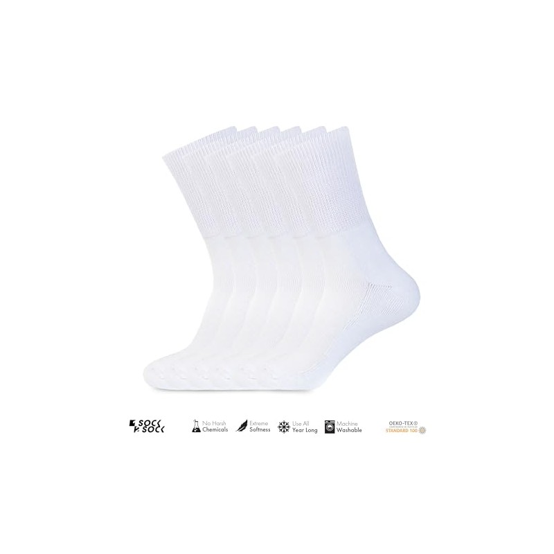 1SOCK2SOCK 6 Pack Diabetic Crew Socks, Therapeutic, Non-Binding Circulatory Silky Soft Cushioned Socks (US, Alpha, Small, Regular, Regular, White)
