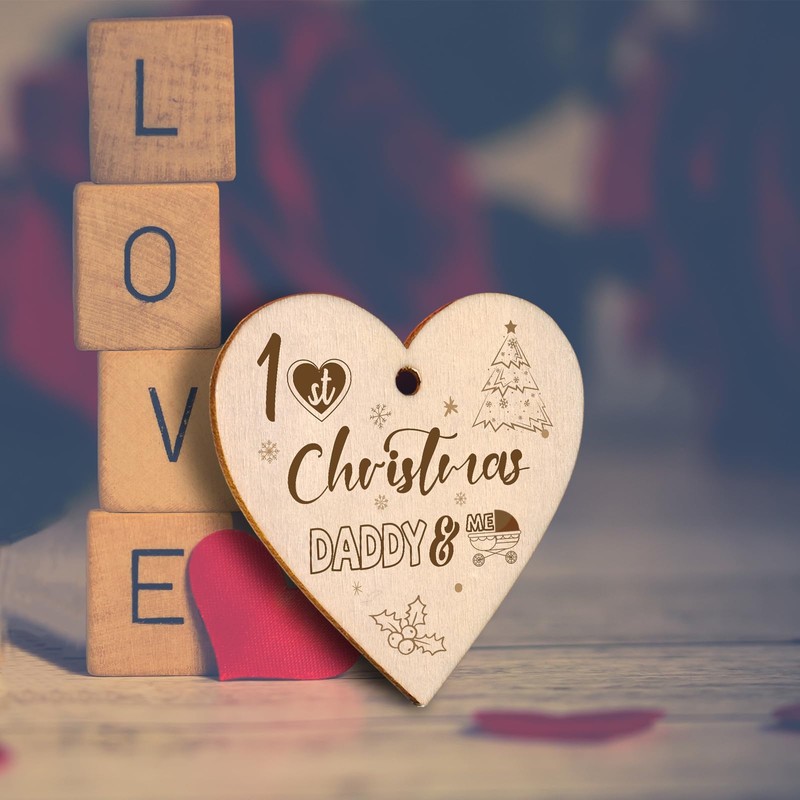 - Rustic Style Decor: The elegant wood background brings a fresh & rustic style that highlights the 1st Christmas photo frame's simple & earthy colors which match the heart-etched 1st Christmas - Daddy & Me quote