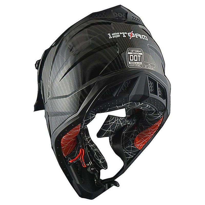 1Storm Adult Motocross Helmet ATV Dirt Bike BMX MX Downhill Mountain Helmet Track Style JH601; Carbon Fiber Black