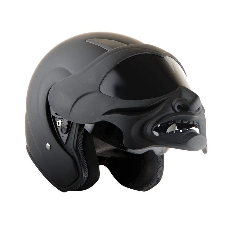 1Storm Motorcycle Open Face Fiber Glass Dual Visor Helmet Scooter Classical Knight Bike Samurai Matt Black + One Extra Clear Shield