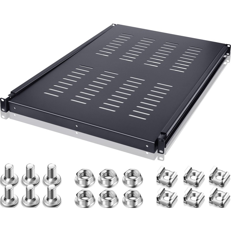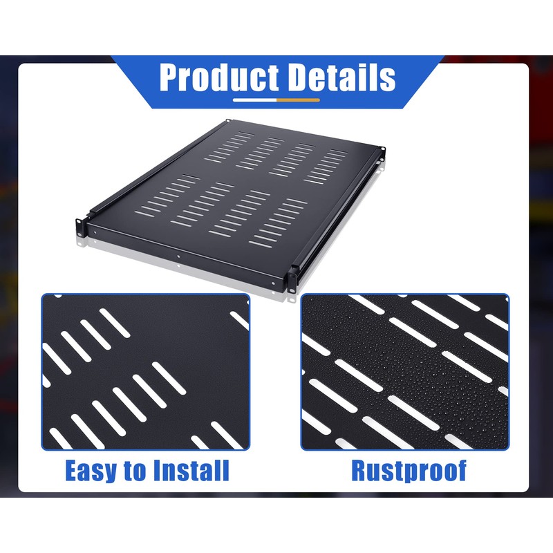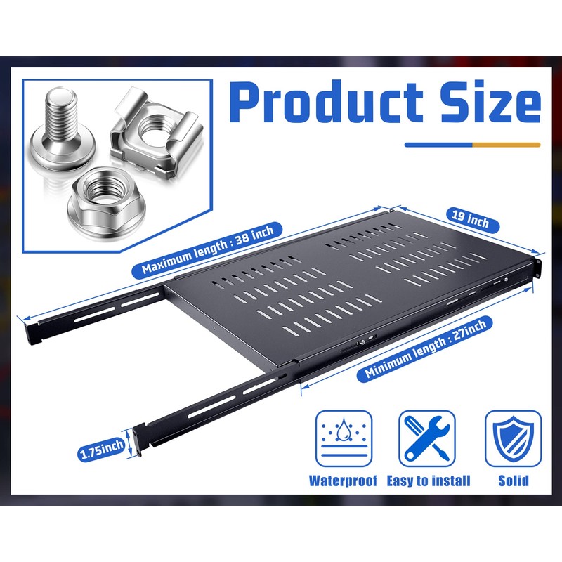 - Universal Fit for 19 Inch Server Rack: with a fixed surface depth of 27.5 inches and an adjustable mounting depth range of 27.5-38 inches, this adjustable vented rack shelf is designed for 19 inch server rack, and suitable for your data, network or other small tools/ equipment