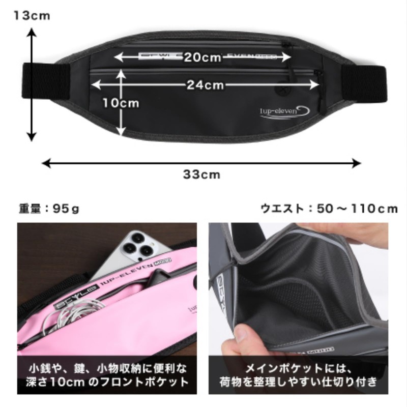 - Unisex: Measures 13.0 inches (33 cm) wide and 5.1 inches (13 cm) tall, and weighs 3.4 oz (95 g). Buckle type strap The length of the belt can be freely adjusted, and the special elastic belt was developed in our own company to cover a wide range of sizes. Fits waist sizes 50-110. Available in 3 colors for both men and women, and can be worn diagonally