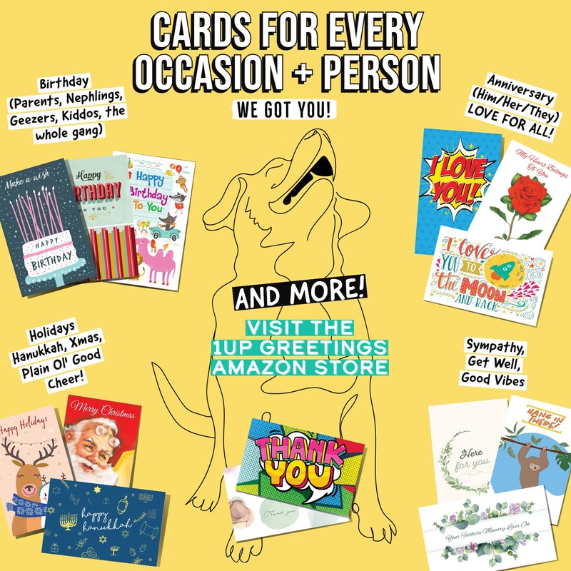 - 🎁🎄🕎🌹👪🐕🦺 HERE FOR YOU FOR ALL OCCASIONS AND CREATURES: 1Up wants to help you create moments of joy and connection with your family regardless of season or person. Let us help you celebrate and get brownie points with your peeps for birthday (ages, relations, humor), anniversary, sympathy, get well, thank you, Valentine's Day, Christmas, Hanukkah, Mother's Day, Father's Day, Graduation, parents, siblings, kids, grandparents, aunts, uncles, nephlings, dogs, cats, friends, and more!