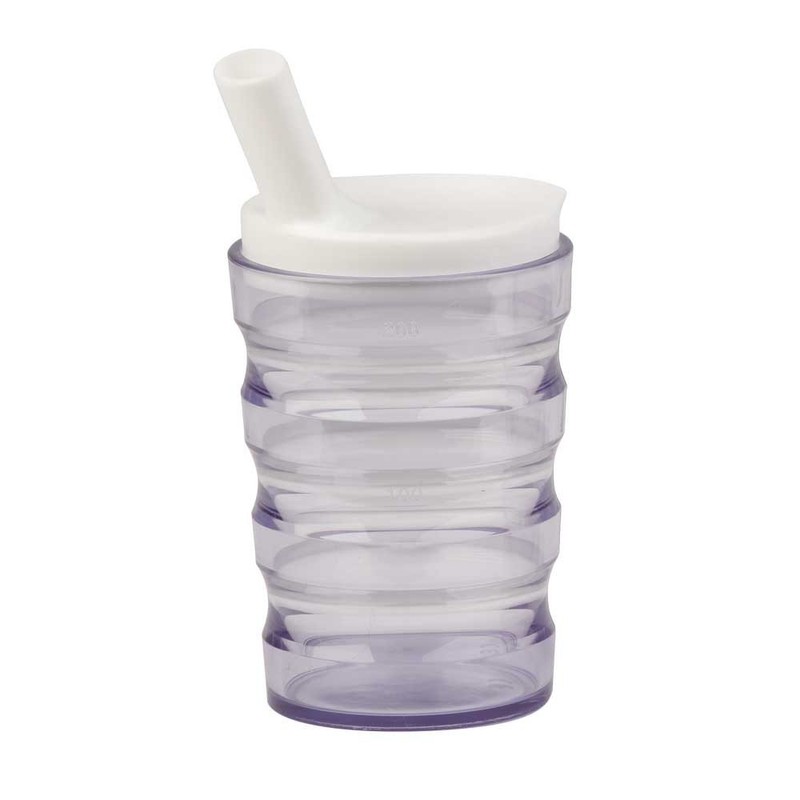 The Behrend drinking cup is break-proof and conditionally leak-proof, is equipped with grooves for optimal hold and a valve that regulates the slow flow.