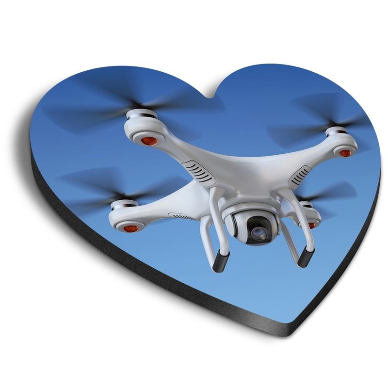 1x Heart MDF Magnet 6cm - Drone Quadrocopter Flying Camera - Fridge Locker Office Whiteboard Toolbox #50785