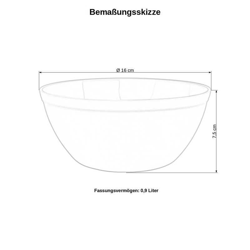 - Abmessungen je Schale: Ø 16 cm / Höhe 7,5 cm // Fassungsvermögen je Schale: 0,9 Liter // Gewicht je Schale: 57 g