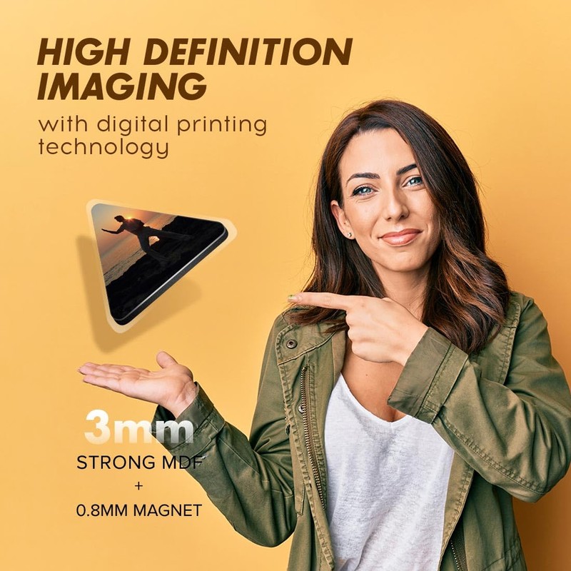 • Triangle Shape: The magnet is Triangle in shape, making it a versatile and easy-to-use decoration. You can use it as a standalone magnet or combine it with other magnets to create a fun and unique display.