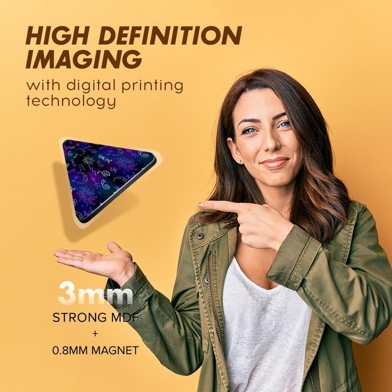 - Triangle Shape: The magnet is Triangle in shape, making it a versatile and easy-to-use decoration. You can use it as a standalone magnet or combine it with other magnets to create a fun and unique display.