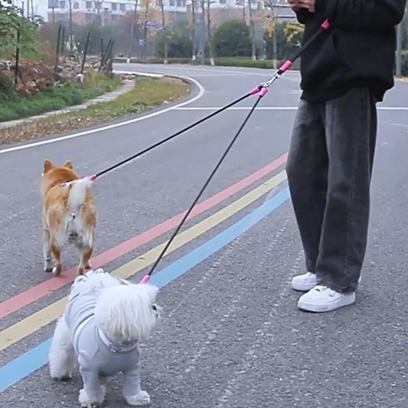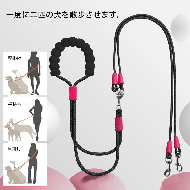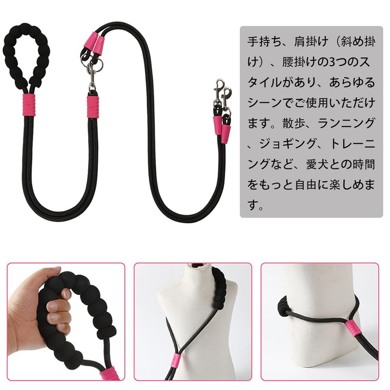 犬 リード 2匹用 お散歩 小型犬 中型犬 多機能 肩掛け式 腰に掛け式 手持ち式 エクササイズ絡まない 丈夫 おしゃれ (主縄*1+副縄*2)