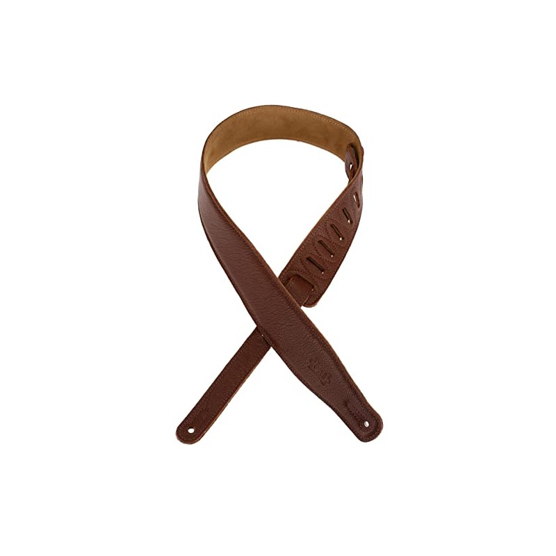 • 2 1/2" Garment Leather Guitar Strap With Foam Padding And Suede Backing. Adjustable From 37" To 51". Brown Color