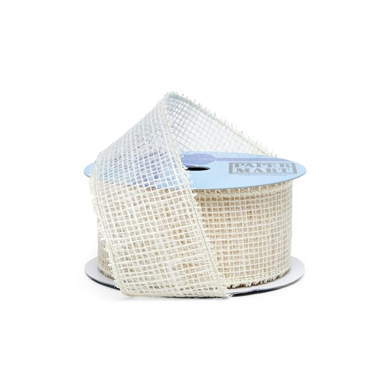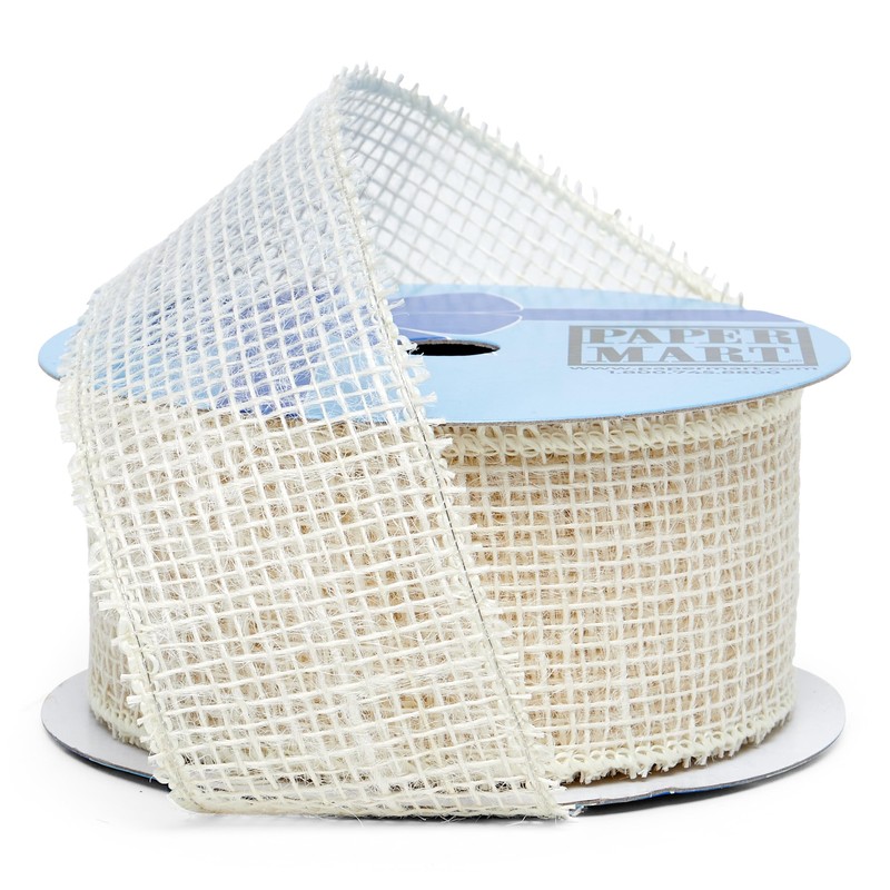 2 1/2" X 10 Yards Burlap Wired Ribbon - Ivory - White - Roll 1