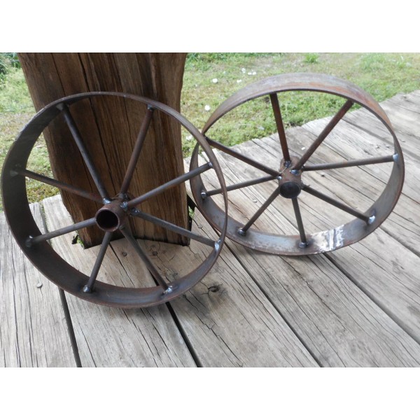 2) 12" steel ornamental Iron Wagon Wheel western rustic art cart Barbecue pit