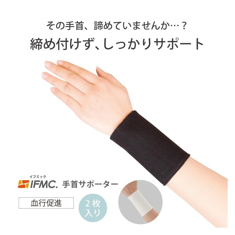 [イフミック] 手首サポーター 締め付けないサポーター 血行促進 男女兼用 2枚入り フリーサイズ14~23cm (黒)