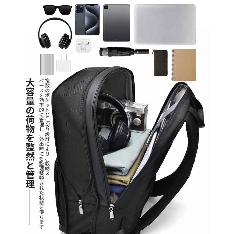- 【効率的な収納を実現する多機能ビジネスリュック】ファスナーで容量が2倍に拡張可能で、出張や旅行にも対応します。フロントポケットにはティッシュやスマホ、折りたたみ傘など細かな小物類の収納に便利な仕分けポケットを装備。ベルト部分にはカードや現金をすぐに取り出せる専用ポケット付きです。