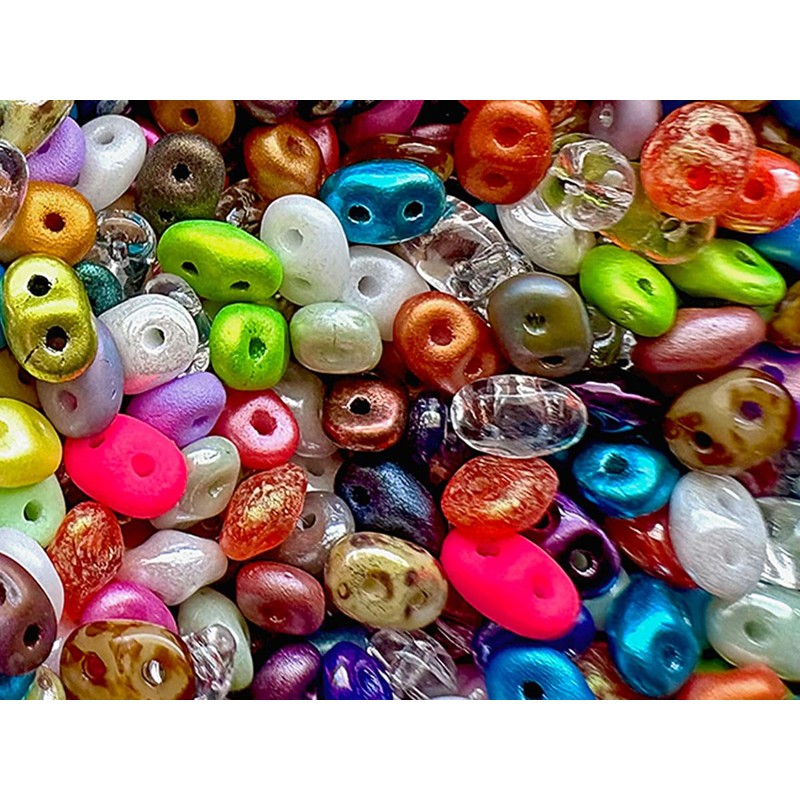 2.1oz (60g) Two Hole Seed Beads SuperDuo 2,5x5 mm, Mix, Czech Glass