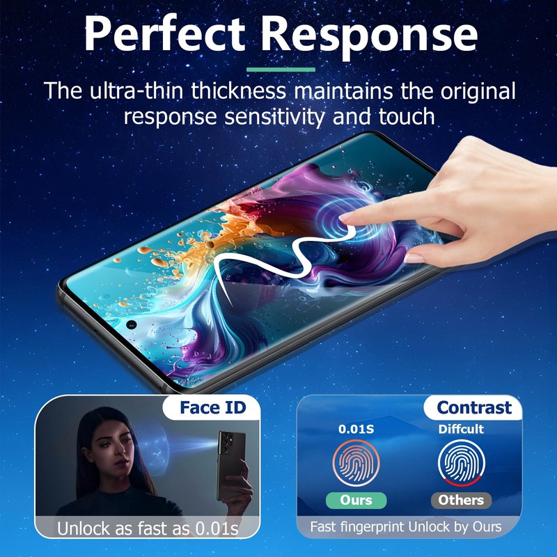 - Fingerprint Unlock: That for Galaxy S21 Ultra Glass screen protector supports fingerprint unlocking without affecting the original sensitivity and responsiveness of the screen. The surface of the protective film also has an oil repellent layer to protect against oil, water, and dust
