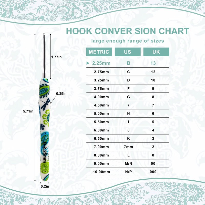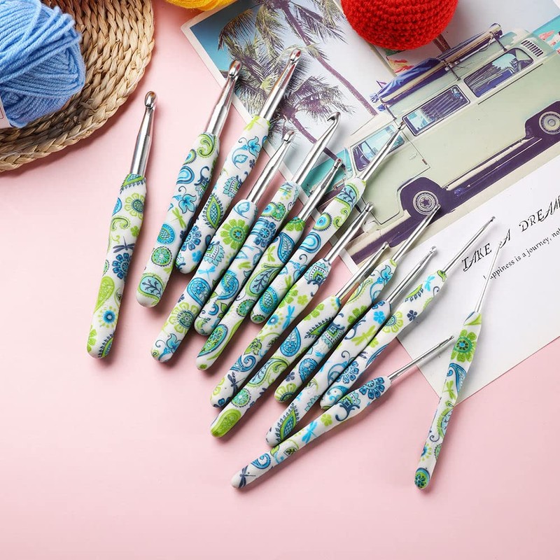 - 🧶Elegant Flower Pattern Rubber Handle: Blue and white porcelain pattern soft rubber handle, unique and elegant eastern style. Our crochet hooks are made of high-quality aluminum material, lightweight, and smooth to crochet. Smooth to the touch, the yarn will not stuck, and you can fast knit with no snagging or catching