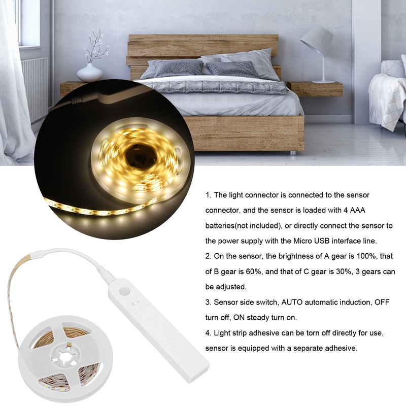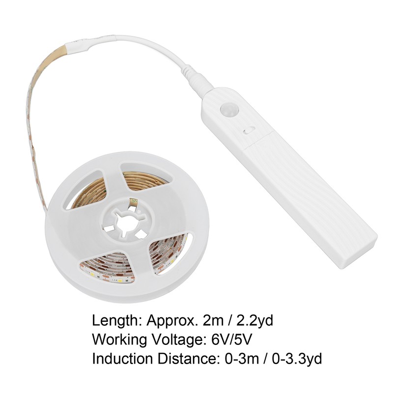 2.2yd Motion Sensor LED Strip Light 3 Brightness Automatic Turn On Motion Activated Bed Light